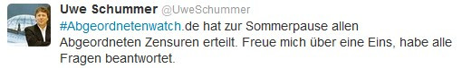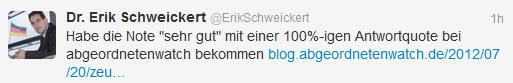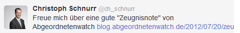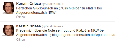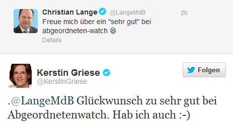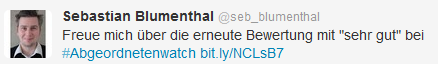 Die Abgeordneten mit einem "sehr gut" freuen sich entsprechend bei Twitter: