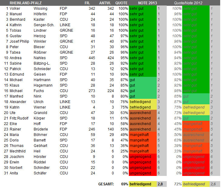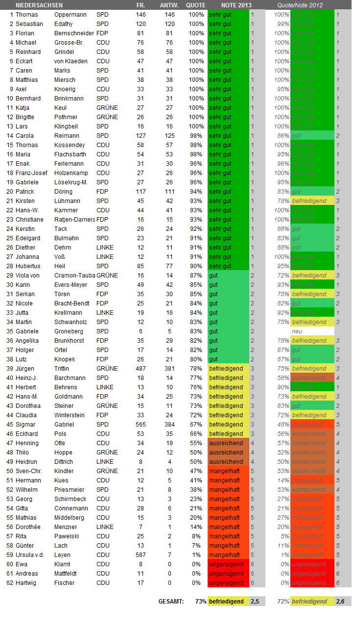 - 17.7.2013 Noten für die Bundestagsabgeordneten aus NRW nachgetragen.