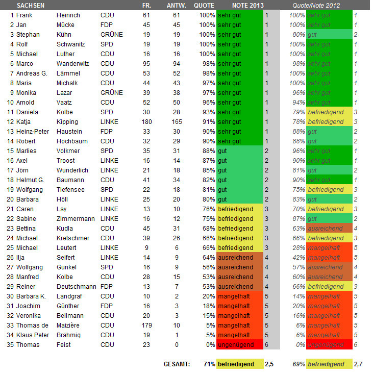 - 11.7.2013: Noten für die Bundestagsabgeordneten aus Sachsen, Sachsen-Anhalt und Thüringen nachgetragen.