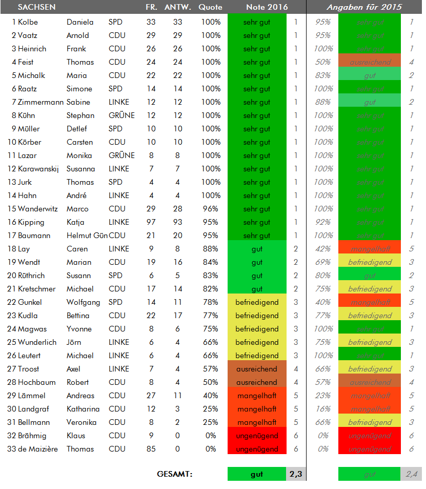 Die Bundestagsabgeordneten im Antwort-Check (2016)