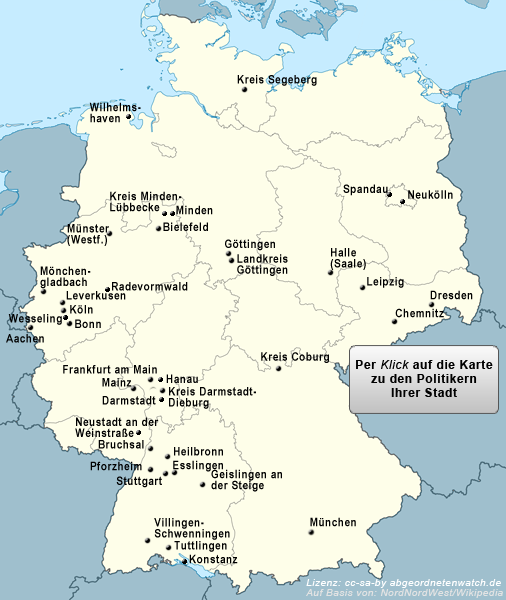 Heute Morgen sind auf abgeordnetenwatch.de 11 neue Kommunen online gegangen: Darmstadt und Hanau (Hessen), Konstanz (Baden-Württemberg), Wilhelmshaven (Niedersachsen), Radevormwald, Wesseling, Minden und Minden-Lübbecke (NRW), Neustadt an der Weinstraße (Rheinland-Pfalz) sowie die Bezirksparlamente in Berlin-Neukölln und -Spandau. Damit sind es nun