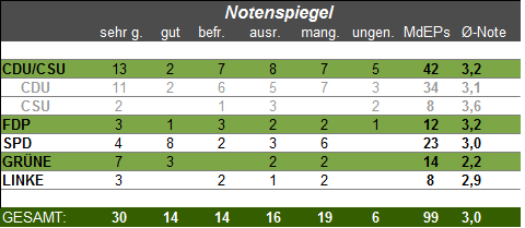 Wie antwortbereit sind die 99 deutschen Europaabgeordneten, wenn ihnen Bürgerinnen und Bürger öffentlich über abgeordnetenwatch.de eine Frage stellen? Vier Wochen vor der Wahl zum Europäischen Parlament machen wir den Antwort-Check: Wer hat in der abgelaufenen Wahlperiode die meisten seiner Fragen beantwortet - und wem war der öffentliche Austausch mit den Bürgerinnen und Bürgern eher egal? abgeordnetenwatch.de hat dazu die Antwortquoten in Schulnoten umgerechnet.