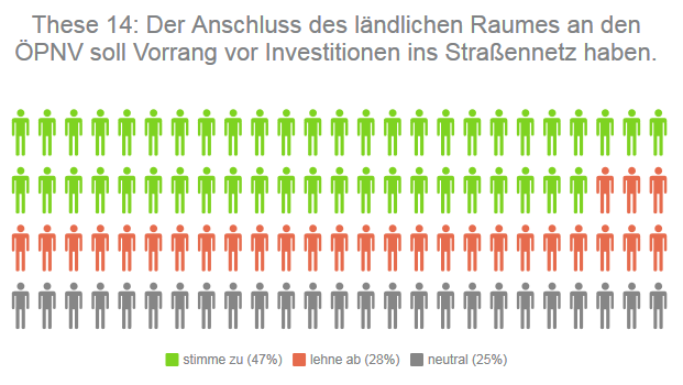 These 14: Der Anschluss des ländlichen Raumes an den ÖPNV soll Vorrang vor Investitionen ins Straßennetz haben.