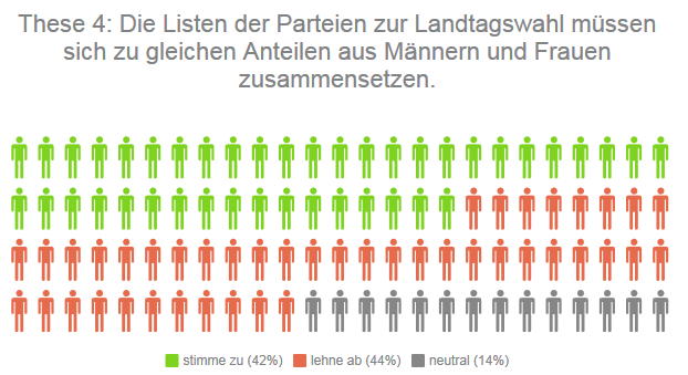 These 4: Die Listen der Parteien zur Landtagswahl müssen sich zu gleichen Anteilen aus Männern und Frauen zusammensetzen.
