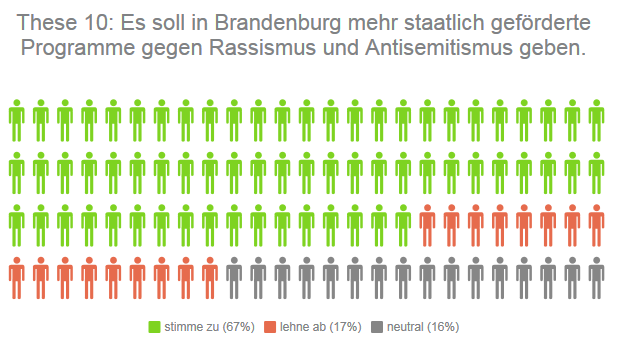 These 10: Es soll in Brandenburg mehr staatlich geförderte Programme gegen Rassismus und Antisemitismus geben.