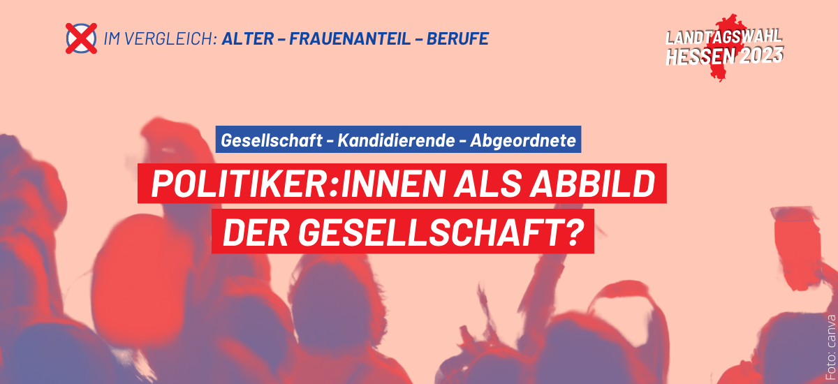 In einem Monat, am 8. Oktober, haben rund 4,3 Millionen wahlberechtigte Bürger:innen die Möglichkeit über die Politik der nächsten 5 Jahre in Ihrem Bundesland zu entscheiden. Aktuell regiert in Hessen eine Schwarz-Grüne Koalition unter dem Ministerpräsidenten Boris Rhein von der CDU. Laut Umfragen hat die Koalition gute Chancen wiedergewählt zu werden. Als Bürger:innen wählen wir unsere Abgeordneten – aber vertreten sie tatsächlich die Vielfalt unserer Gesellschaft? Genau dieser Frage sind wir nachgegangen, speziell für Hessen. Wir haben die Gesellschaft, die aktuellen Wahlkreisbewerber:innen für die Landtagswahl und die derzeitigen Abgeordneten in mehreren Aspekten miteinander verglichen.