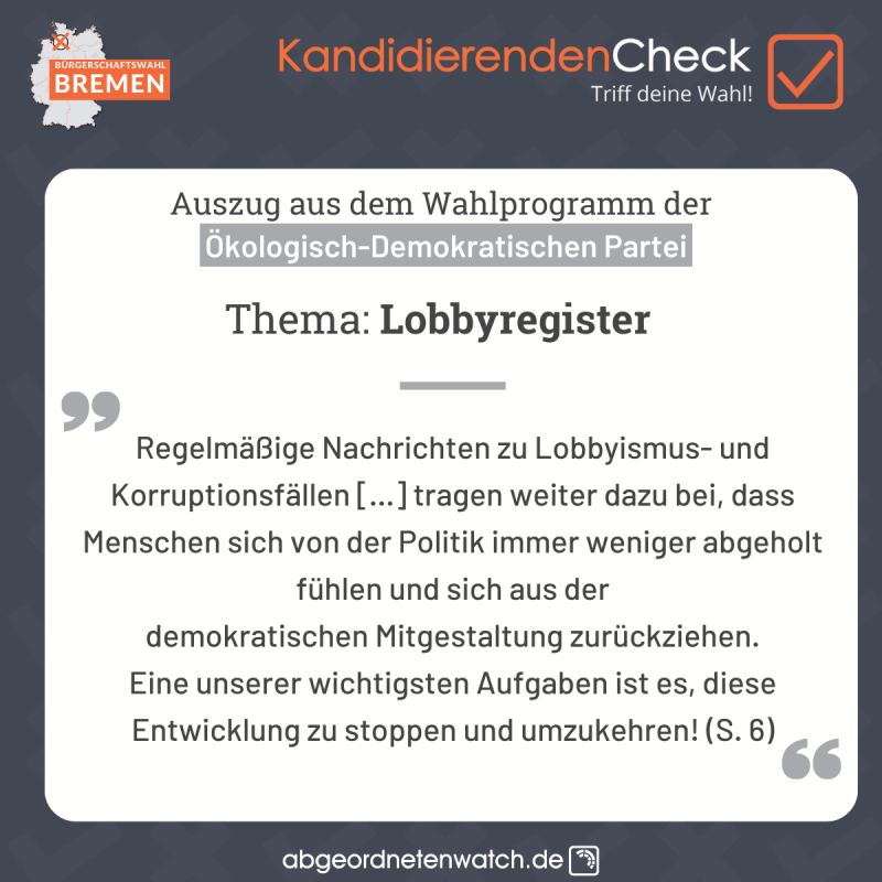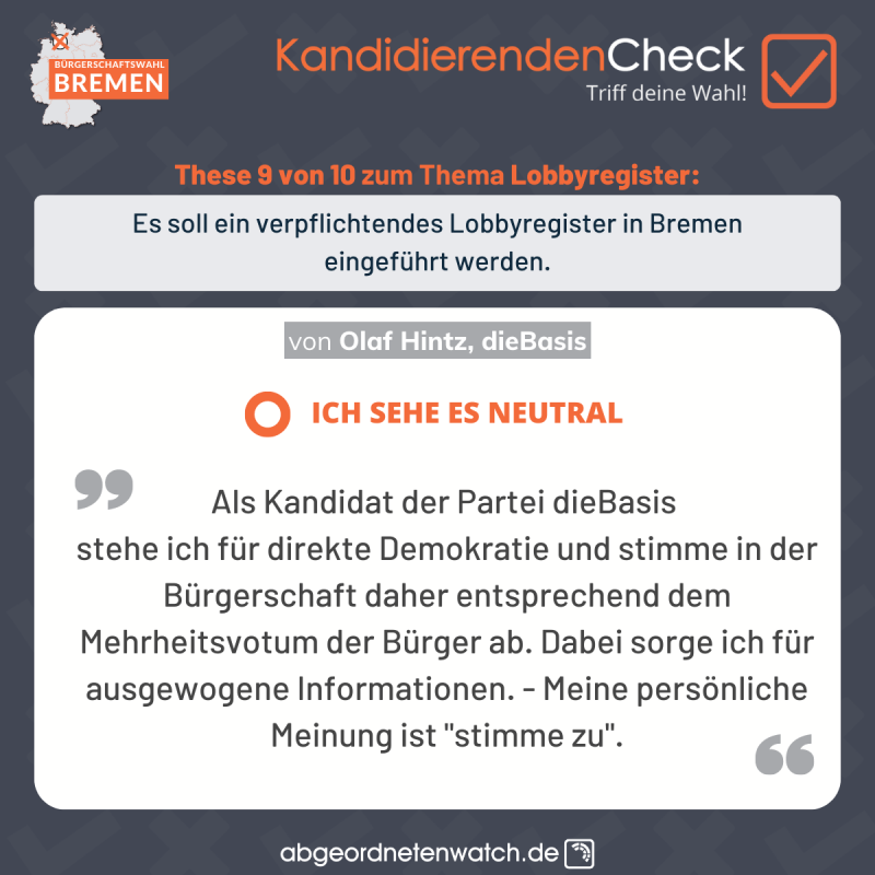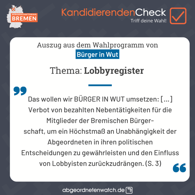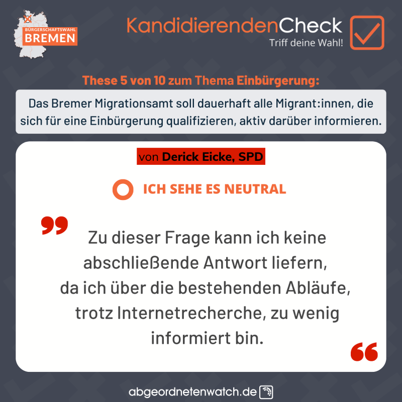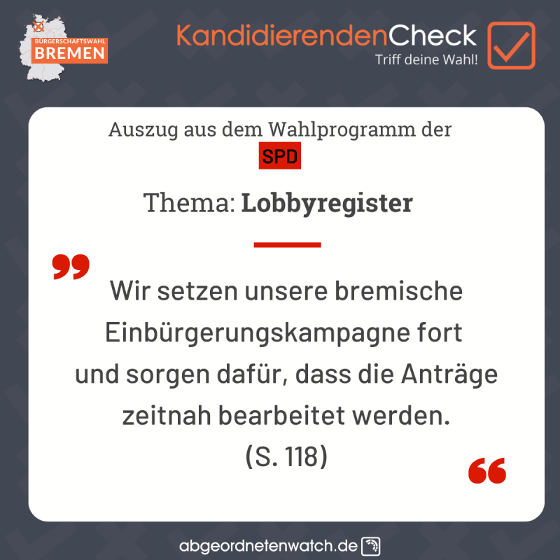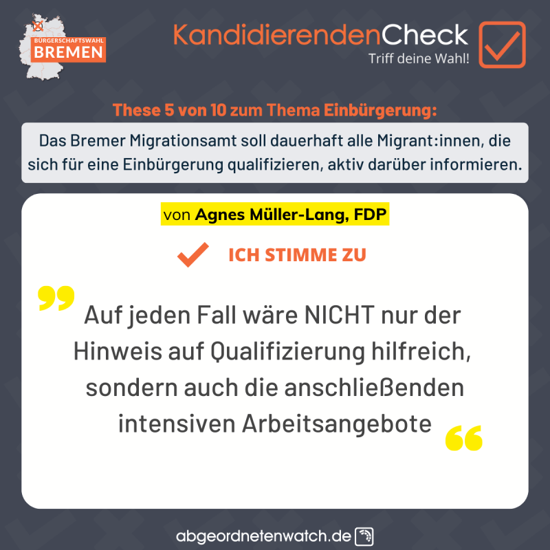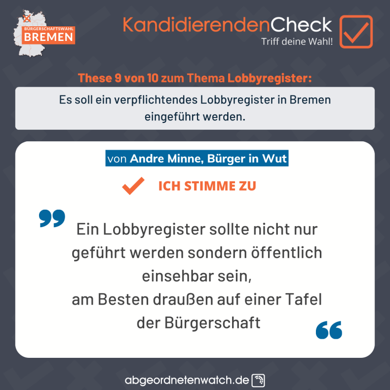 Am 14. Mai wählt Bremen eine neue Bürgerschaft. In unserem Kandidierenden-Check positionieren sich die Wahlbewerber:innen zu zehn relevanten Thesen für Bremen. Ob sozialer Wohnungsbau, der Umgang mit Drogenkonsum oder die Weservertiefung - auch parteiintern herrscht nicht immer Einigkeit. Eine kleine Auswahl der Antworten finden Sie hier!