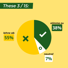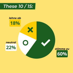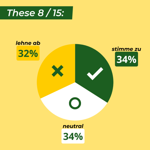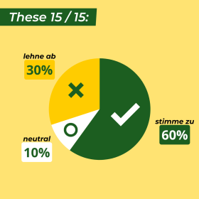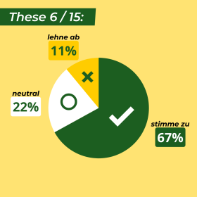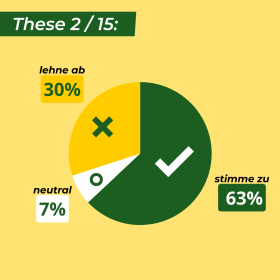 Bei den Freien Wählern ist das Meinungsbild hingegen gespalten: 54% befürworten die Kostenbeteiligung, 8% lehnen sie ab und 37% bleiben neutral. Auch in der SPD ist die Meinung zu diesem Thema geteilt: 49% sind dafür, 49% neutral und 2% dagegen. Der SPD-Direktkandidat Alexander Geißler begründet seine Zustimmung folgendermaßen: