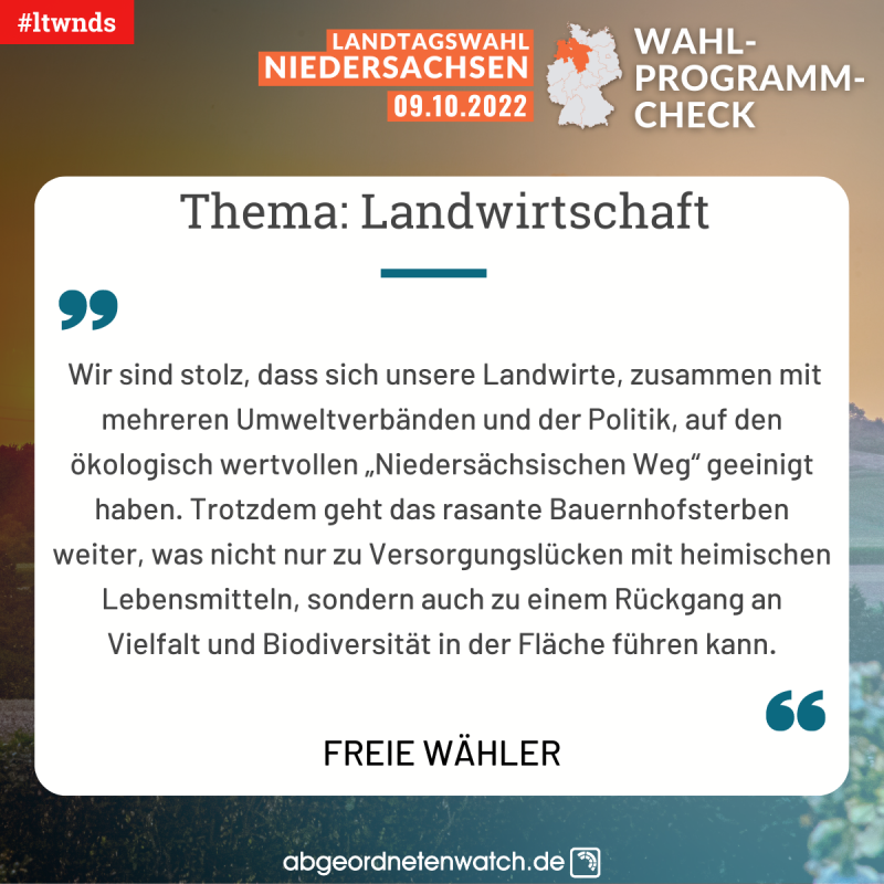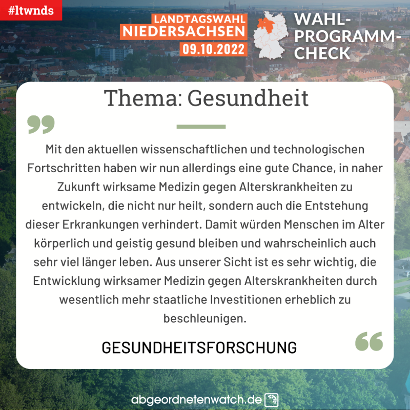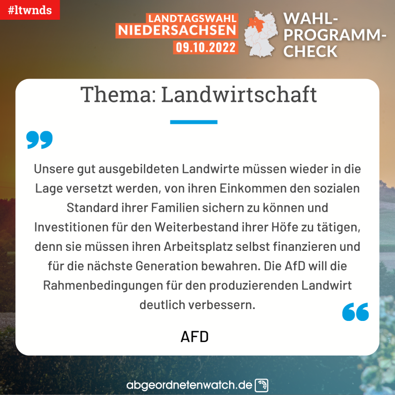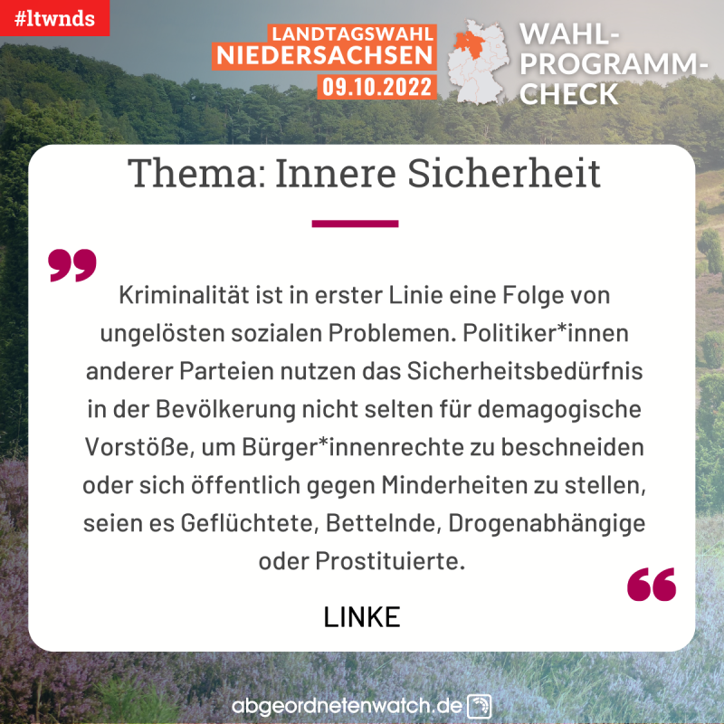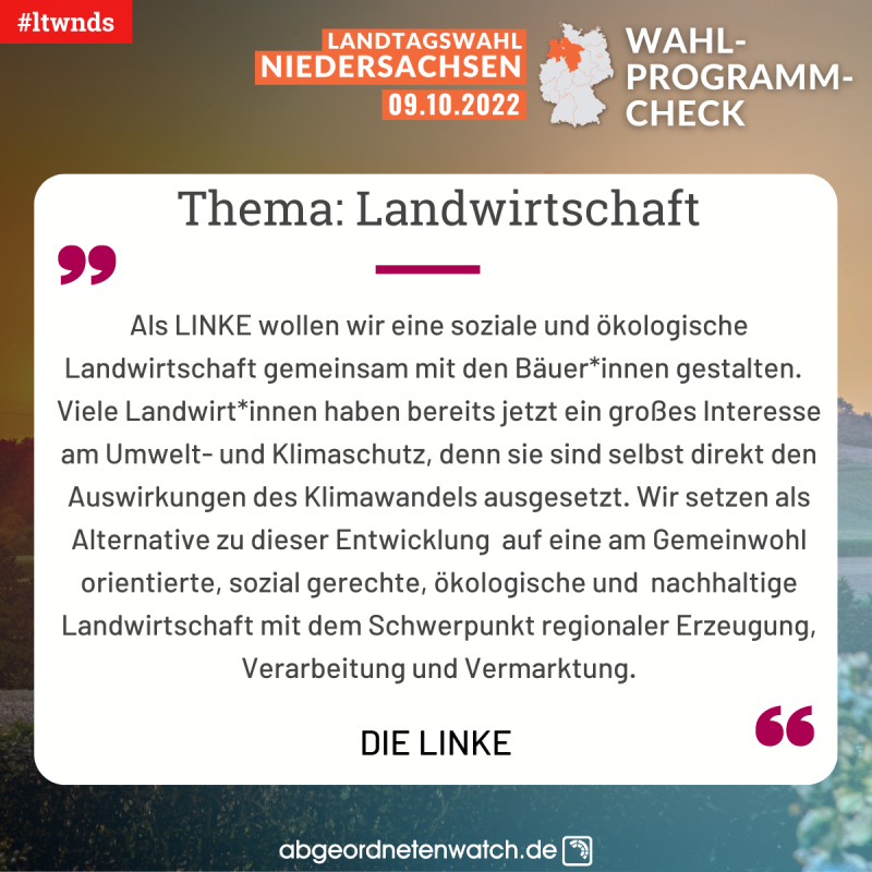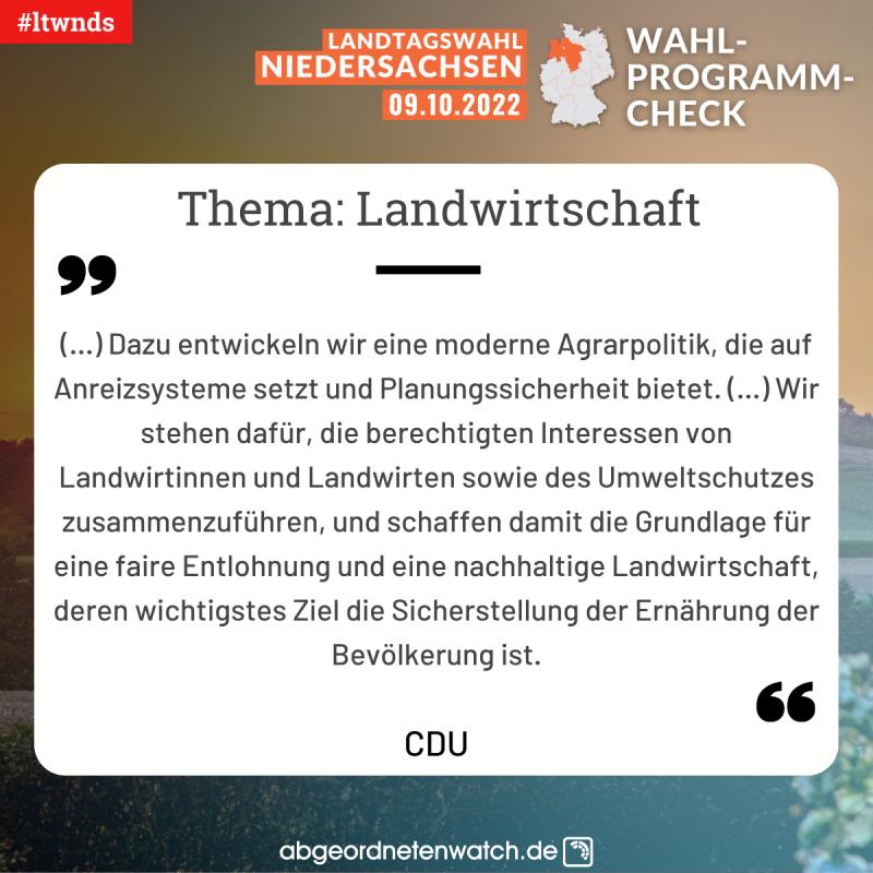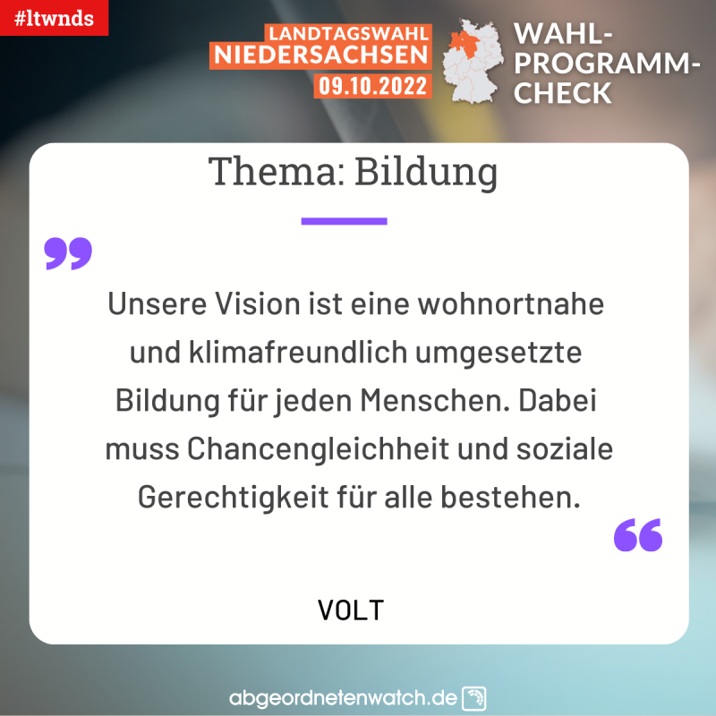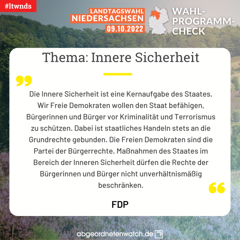 Wir haben die Wahlprogramme verschiedener Parteien zur Landtagswahl 2022 in Niedersachsen verglichen. Wie positionieren sie sich zu unterschiedlichen Themen? Das erfahren Sie in unseren Wahlprogramm-Checks!