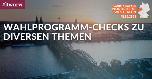 abgeordnetenwatch.de 24 Apr 2022 Landtagswahl Nordrhein-Westfahlen 2022 Wahlprogramm-Checks zu diversen Themen