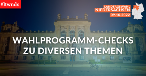 abgeordnetenwatch.de 15 Sep 2022 Landtagswahl Niedersachsen 2022 Wahlprogramm-Checks zu diversen Themen