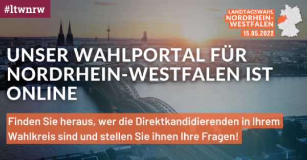 abgeordnetenwatch.de 30 Mär 2022 Wahl am 15. Mai 2022 Frageportal von abgeordnetenwatch.de zur Landtagswahl in Nordrhein-Westfalen gestartet