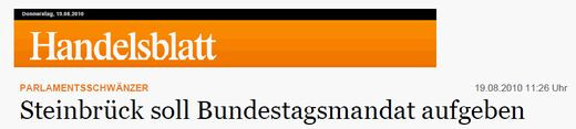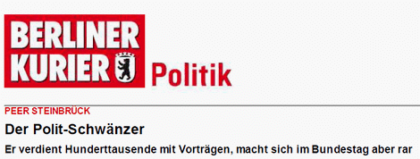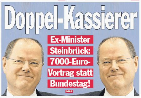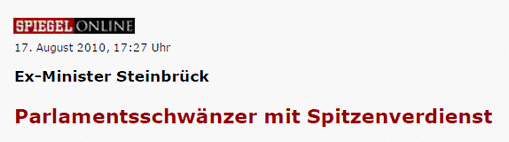 - der SPD-Bundestagsabgeordnete und frühere Finanzminister Peer Steinbrück strich im Geschäftsjahr 2009/2010 für seinen Aufsichtsratsposten beim Stahl- und Rüstungskonzern ThyssenKrupp AG 47.907 Euro ein. In Zukunft erführen wir, dass es nicht nur „über 7.000 Euro“ waren, sondern „zwischen 40.000 und 50.000“ Euro.