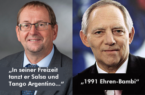 Von Johannes Kahrs ist beispielsweise zu erfahren, dass er dem Kiezclub FC St. Pauli zugeneigt ist, sein Kollege Klaus-Dieter Gröhler hält es mit der Berliner Hertha. Bundesfinanzminister Wolfgang Schäuble führt vom "Ehren-Bambi" bis zur "Goldenen Henne" so ziemlich jede Auszeichnung auf, die er schon einmal erhalten hat. Und der Abgeordnete Richard Pitterle lässt Bürgerinnen und Bürger über sich in der dritten Person wissen: "In seiner Freizeit tanzt er Salsa und Tango Argentino. Früher betätigte er sich als DJ für Salsa-Musik." Kurzum: Auf der Parlamentshomepage dürfen Bundestagsabgeordnete so ziemlich alles über sich mitteilen, was sie möchten.