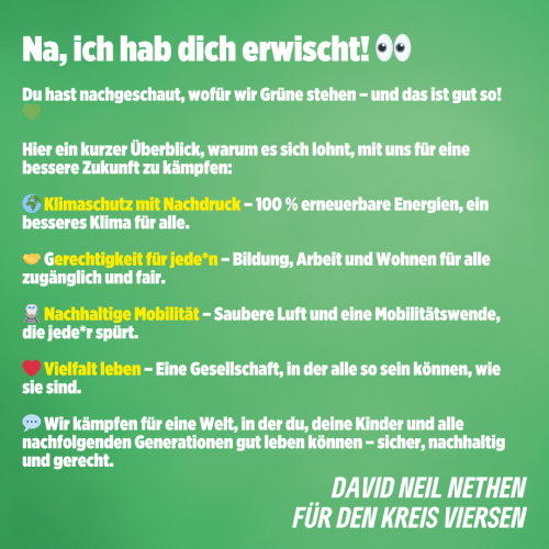 Als Bundestagskandidat der Grünen für die Bundestagswahl 2025 im Kreis Viersen setze ich mich dafür ein, dass Klimaschutz sowohl auf nationaler als auch auf lokaler Ebene höchste Priorität erhält