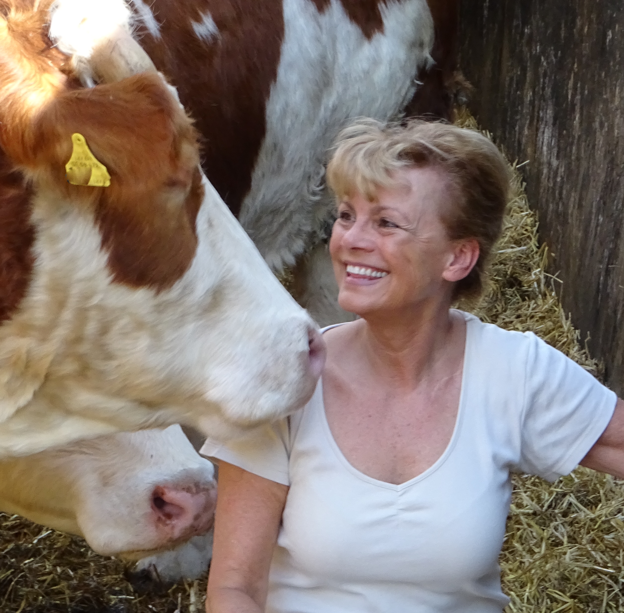 Ein zweites Motiv wird gemeinsam mit Kuh Melanie in Druck gehen, die von ihrer Besitzerin Brigitte Straub gerettet wurde, nachdem sie auf dramatische Weise im Schlachthof zur Welt kam. Jährlich werden in Deutschland nach Schätzungen der Bundestierärztekammer 180.000 trächtige Kühe geschlachtet, deren ungeborene Kälber nach dem Tod ihrer Mütter qualvoll verenden. Insgesamt haben bei Brigitte Straub ein Ochse und fünf Kühe einen Lebensplatz gefunden und waren nach kurzem Fremdeln neugierig bereit sich ablichten zu lassen.