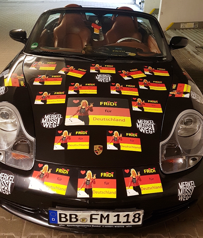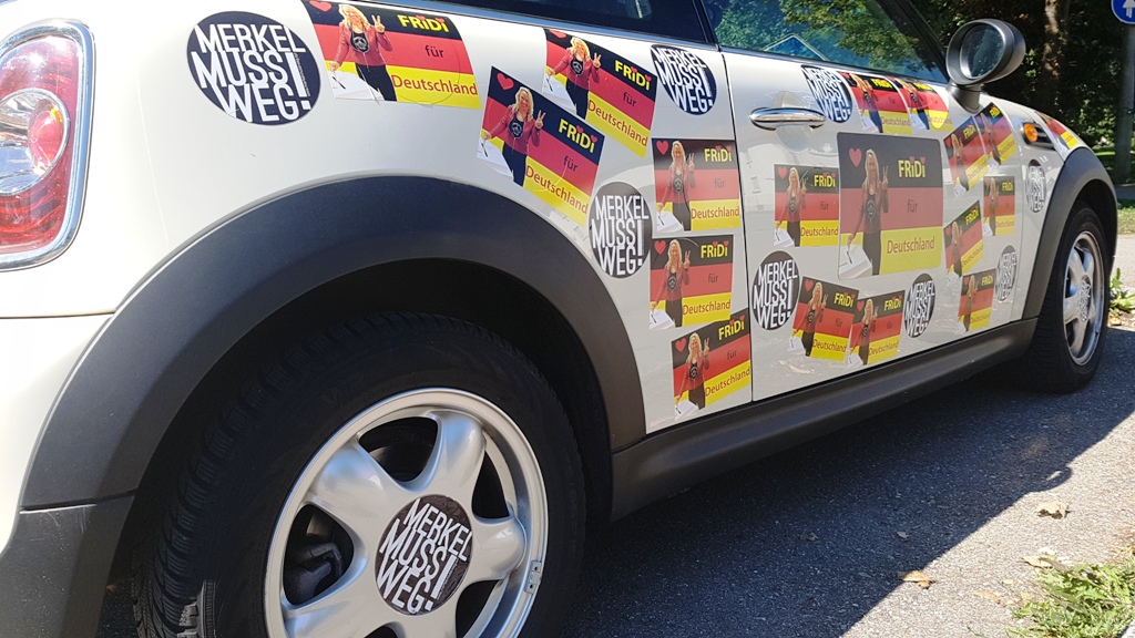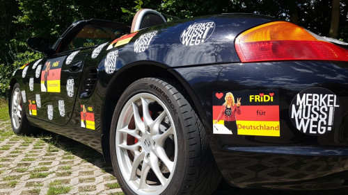 Die Merkel-muss-weg-Aufkleber sind beim Porsche längst komplett "weg" und beim Mini auch weitgehendst "weg", respektive überklebt, siehe Fotos im Anhang.