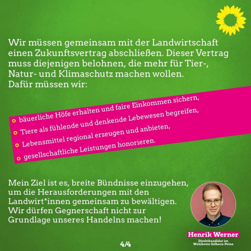 Ich möchte gemeinsam mit Euch und Ihnen für eine gute Zukunft kämpfen, Wirtschaft und Umwelt zusammendenken und eine Stimme für die Stimmlosen und Nicht-Gehörten sein. Ich trete ein für eine sozial-ökologische und vielfältige Zukunft. Das sind nicht nur Phrasen – das sind meine innersten Überzeugungen und mein Antrieb, welcher mich in die Politik geführt hat und wofür ich täglich kämpfe!