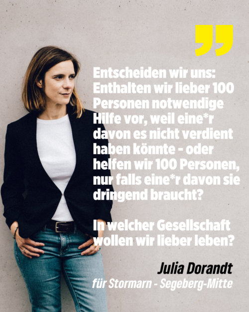 Ich finde, Repräsentation ist wichtig - Volksvertreter*innen sollten auch dessen Querschnitt im Bundestag abbilden. Frauen, speziell Mütter, sind neben anderen Gruppen immer noch unzureichend repräsentiert - ebenso wie unser Klima und die Umwelt. Ich setze mich für eine gerechte und bezahlbare Zukunft auf einem intakten Planeten ein - und zwar für alle Menschen.
