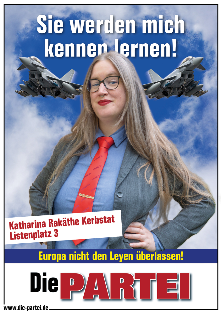 Als die Zeit reif war, trat Katharina "RaKäthe" Kerbstat in die Arena der Politik ein, um ihr Volk zu führen. Mit der Partei Die PARTEI als ihr Vehikel, führte sie einen unermüdlichen Kampf für Gerechtigkeit, Freiheit und Wohlstand für alle. Ihre Reden waren wie Donner, der die Berge erschütterte, und ihre Vision war wie ein Leuchtfeuer, das die Nacht der Unwissenheit vertrieb.