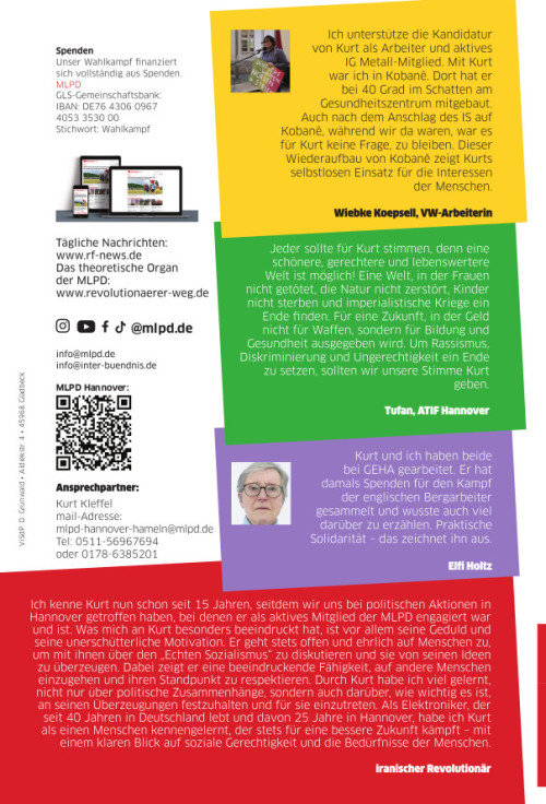 Die letzten Monate zeigen: die Massen wollen so nicht mehr leben. Eine Alternative zu dem krisen-gebeutelten Kapitalismus ist überfällig. Die AfD ist eine faschistische Partei, die für keinen Arbeiter infrage kommen darf. Gegen den Faschismus zeigt die MLPD als einzige Partei klare Kante. Wir sind eine wirkliche Arbeiterpartei, die für den Weg des Kampfs um die Arbeiterinteressen steht. Wir haben eine echte sozialistische Alternative, in der Ausbeutung und Unterdrückung der Vergangenheit angehören werden.