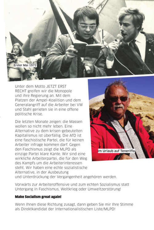 Unter dem Motto JETZT ERST RECHT greifen wir die Monopole und ihre Regierung an. Mit dem Platzen der Ampel-Koalition und dem Generalangriff auf die Arbeiter bei VW und Stahl gerieten sie in eine offene politische Krise.