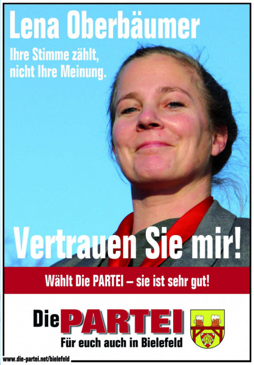 (...) wir sind eine seriöse PARTEI. Daher können Sie sich darauf verlassen, dass in all unseren Plakaten ernstgemeinter Aussagen enthalten sind.