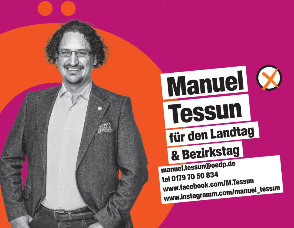 Veränderung beginnt im Denken jedes Einzelnen. Manuel Tessun ist überzeugt, dass die ÖDP die richtigen Weichen stellt. Er setzt sich für eine unabhängige Politik ein, die nicht Konzernen und Lobbygruppen dient, sondern eine nachhaltige Wirtschaft fördert.