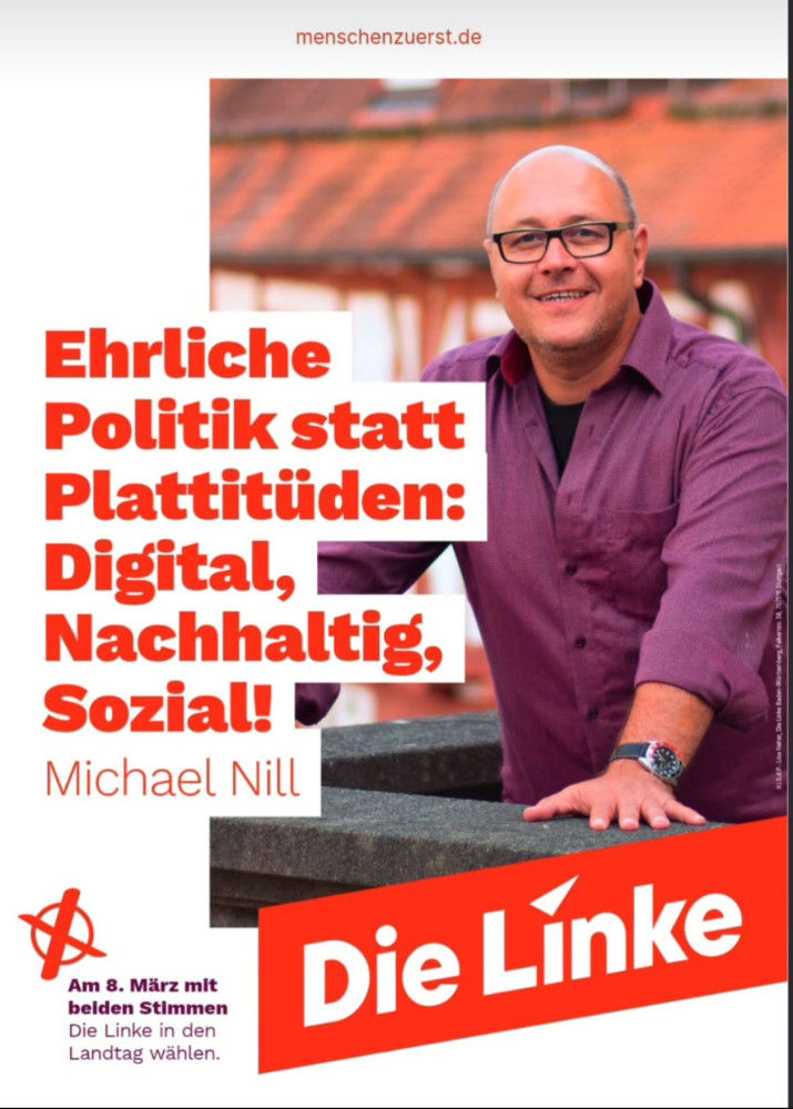 Über Michael NillAusgeübte Tätigkeit Selbstständiger IT-TechnikerBerufliche Qualifikation Staatlich anerkannter Assistent der BiotechnologieWohnort Illmensee-RuschweilerGeburtsjahr 1974Kandidaturen und Mandate Kandidat Baden-Württemberg Wahl 2026 Tritt an für: Die Linke Wahlkreis: Sigmaringen Wahlkreis SigmaringenFragen und AntwortenGalerie