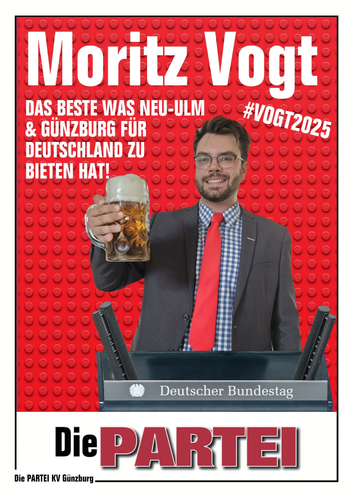 Fragen und Antworten Frage von Florian B. • 08.09.2023 Warum bist du Premiumpolitiker und was macht das mit Dir? Antwort 08.09.2023 von Moritz Vogt Die PARTEIEinfach weil ich geil bin. Bayern Wahl 2023 Wahlkampf Künstliche Intelligenz Die PARTEI Alle Fragen und Antworten Über Moritz VogtAusgeübte Tätigkeit TrainerBerufliche Qualifikation HotelfachmannWohnort BibertalGeburtsjahr 1997Moritz Vogt schreibt über sich selbst: Sehr guter Politiker der Partei "Die PARTEI".1.Vorstand des KV Günzburg Mehr anzeigen Weniger anzeigen Kandidaturen und Mandate Kandidat EU-Parlament Wahl 2024 Angetreten für: Die PARTEI Wahlliste: Bundesliste Wahlliste BundeslisteListenposition 124Fragen und Antworten Kandidat Bayern Wahl 2023 Angetreten für: Die PARTEI Stimmkreis: Günzburg Stimmkreis GünzburgWahlkreisergebnis 1,36 %Erhaltene Personenstimmen 855Wahlliste Wahlkreisliste SchwabenListenposition 10Fragen und Antwortenkandidierendencheck Bayern Wahl 2023Galerie Weiterführende LinksInstagram