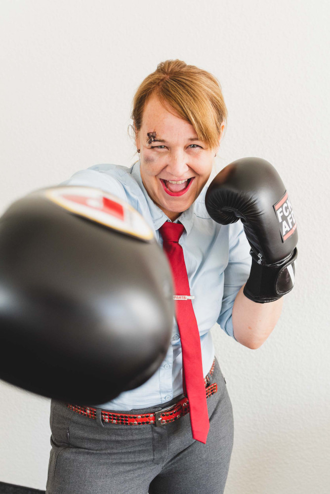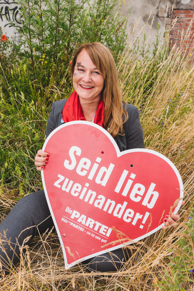 Mitglied bei "Die PARTEI" seit April 2021, kometenhafter Aufstieg zur Kanzlerinnenkandidatin in der Parteihochburg Dortmund für den Wahlkreis 143. HURRA!