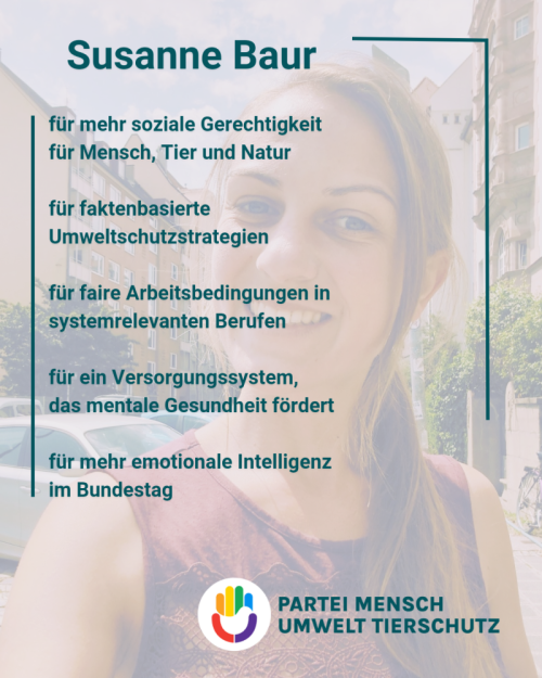 Mit einem klaren Fokus auf soziale Gerechtigkeit für Mensch und Tier, der Stärkung der mentalen Gesundheit, fairen Bedingungen in systemrelevanten Berufen und faktenbasierten Umweltschutzstrategien setze ich mich für eine zukunftsfähige und gerechte Gesellschaft ein.