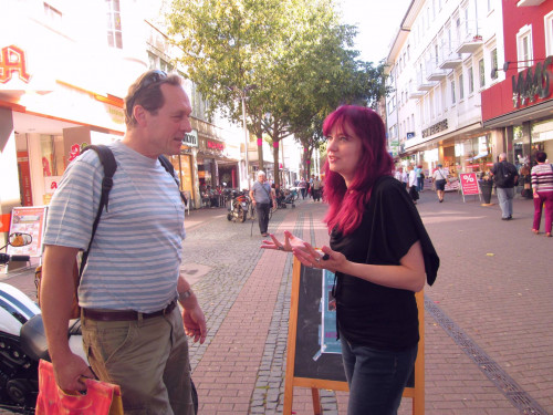 Seit ich Studentin bin, bin ich in Frieden, Umweltlich und Sozialthemen aktiv. Ich war tätig als Studentjournalistin, Bloggerin und Rundfunk-Reporterin bei der Student Rundfunksender WSIA, und war aktiv in Demonstrationen und Alternativ Webseiten. Hier in Deutschland war ich aktiv bei March Against Monsanto. Als Musikerin habe ich mich oft politisch engagiert, z.B. bei Wormser Für Den Frieden.