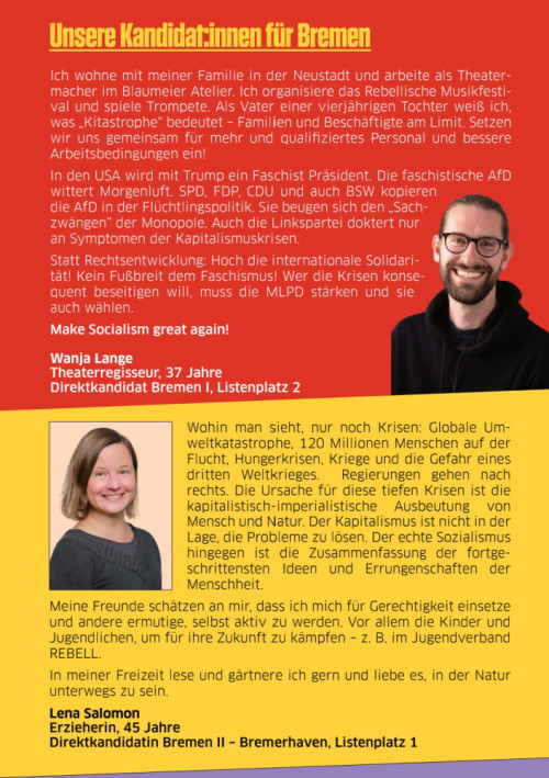Wer die Krisen konsequent beseitigen will, muss die MLPD stärken und sie auch wählen.