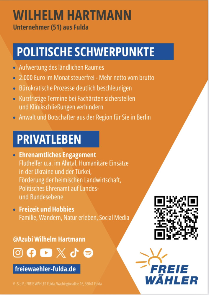 Deutschland in Not-nun muss ich mit Ihrer Unterstützung auch in politische Verantwortung treten, um aktiv einen dringen notwendigen Kurswechsel mit gesundem Menschenverstand in vielen Bereichen gemeinsam mit weiteren FREIE WÄHLER Parteifreunden einzuleiten ! Wir befinden uns in der Mitte des politischen Spektrums, liberal-konservativ, frei von jeglicher Ideologie.