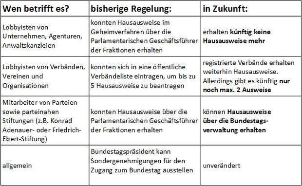 (Ausführliche Informationen der Bundestagsverwaltung über die neuen Zugangsregeln finden Sie in diesem pdf.)