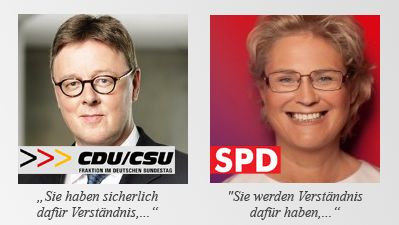 Fotos: Michael Grosse-Brömer © Butzmann, Lizenz: CC-BY-SA 3.0 | Christine Lambrecht © spdfraktion.de | Britta Haßelmann © gruene-bundestag.de | Petra Sitte © DIE LINKE im Bundestag