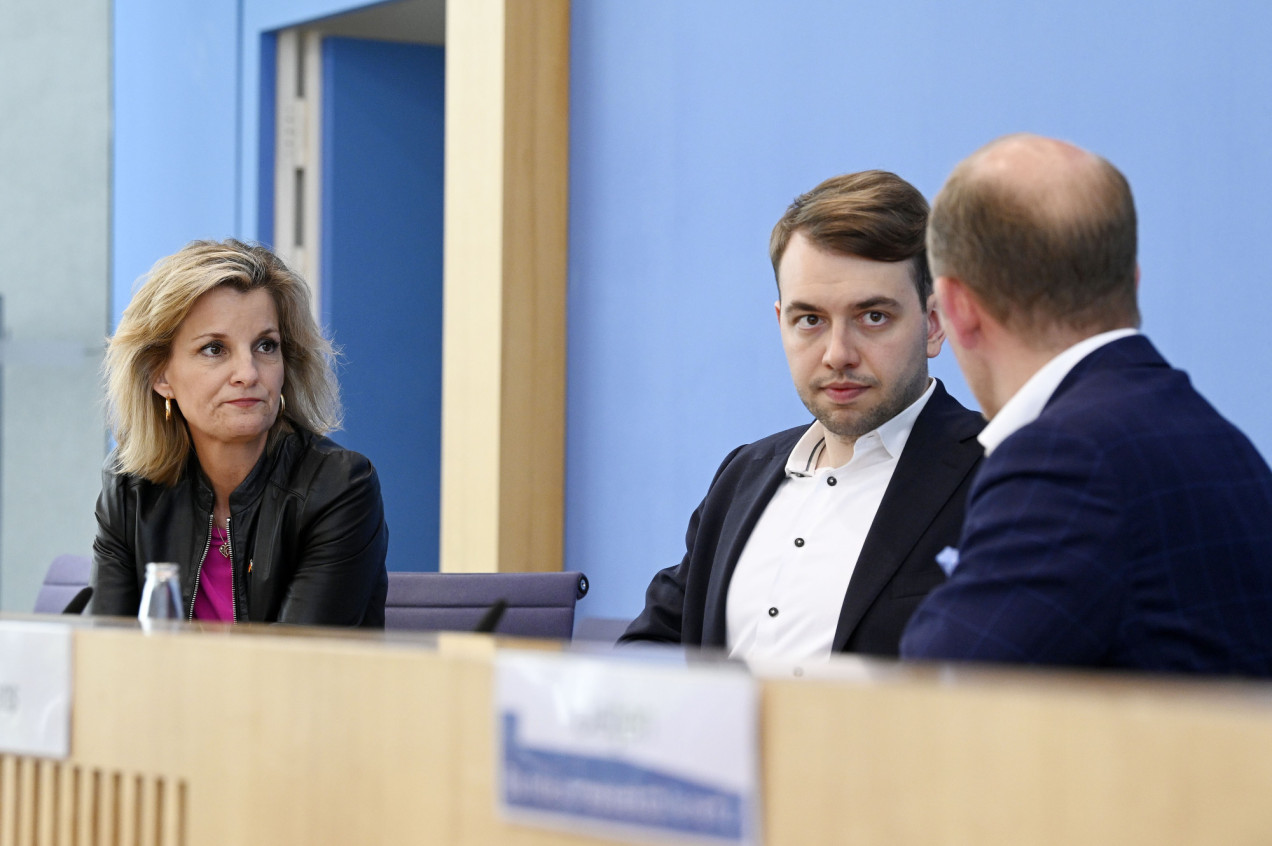 Philip Krämer (Mitte) bei einer Elnet-Pressekonferenz 2024, als er noch Bundestagsabgeordneter war.