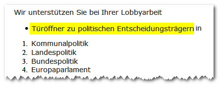 Michael Freiberg übrigens, der als Landtagsabgeordnete getarnte Lobbyist vom Anfang, möchte seine Türöffner-Dienste inzwischen nicht mehr öffentlich anpreisen. Seine Homepage wird derzeit "überarbeitet".