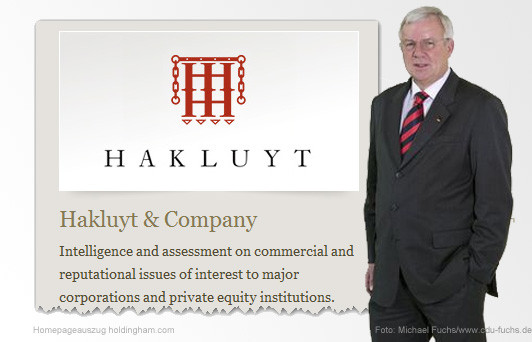 Seit kurzem können die Nachrichtendealer auf die Expertise eines einflussreichen Bundestagsabgeordneten bauen. Nach Informationen von abgeordnetenwatch.de wird Hakluyt & Company vom stellvertretenden Vorsitzenden der CDU/CSU-Bundestagsfraktion, Michael Fuchs, beraten. Vergangene Woche wurde dessen Tätigkeit als neues Beiratsmitglied auf der Bundestagshomepage eingetragen.