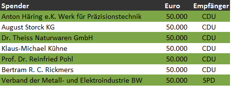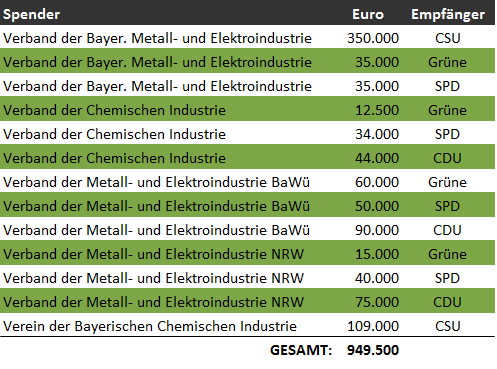 Ganz vorne mit dabei: Die Spenden der Metall- und Chemielobby