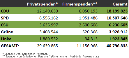 CDU, CSU, SPD, Grüne, Linke - wer erhielt wie viel?