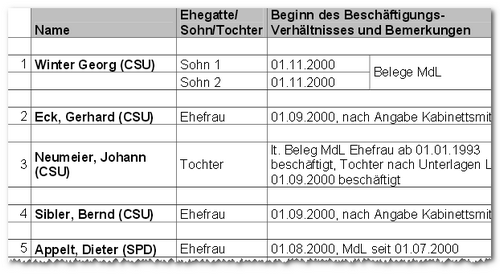 Wie aus der heute veröffentlichten Liste hervorgeht, stellten mehrere Volksvertreter ihre Angehörigen noch zum 1. September 2000 ein, der Abgeordnete Georg Winter sogar zum 1. November.